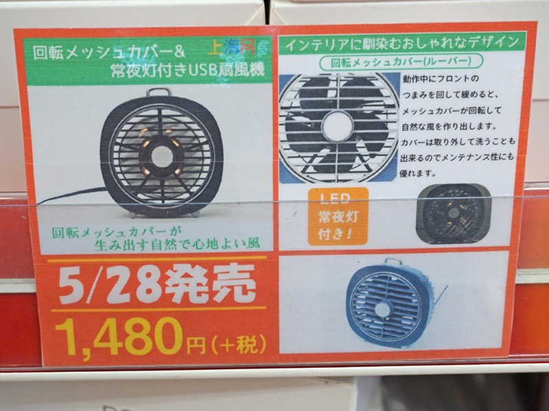 常夜灯を備えたUSB扇風機が上海問屋から、価格は1,480円