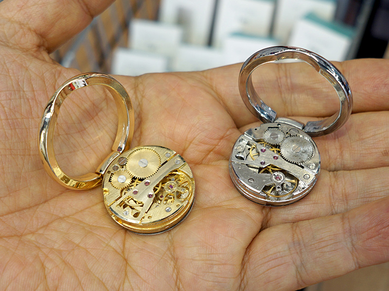 機械式時計風のスマホリングが上海問屋から、スタンド機能もあり