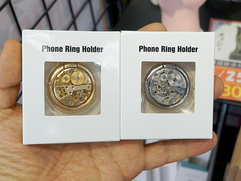 機械式時計風のスマホリングが上海問屋から、スタンド機能もあり