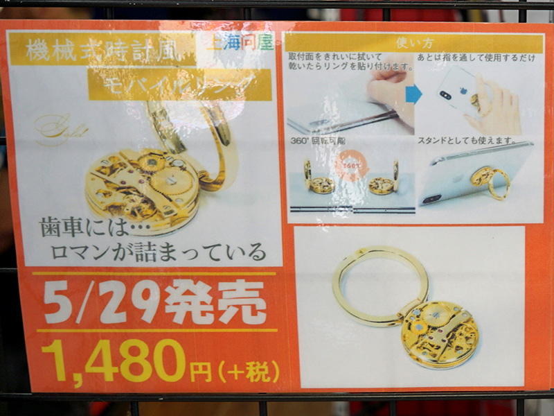 機械式時計風のスマホリングが上海問屋から、スタンド機能もあり