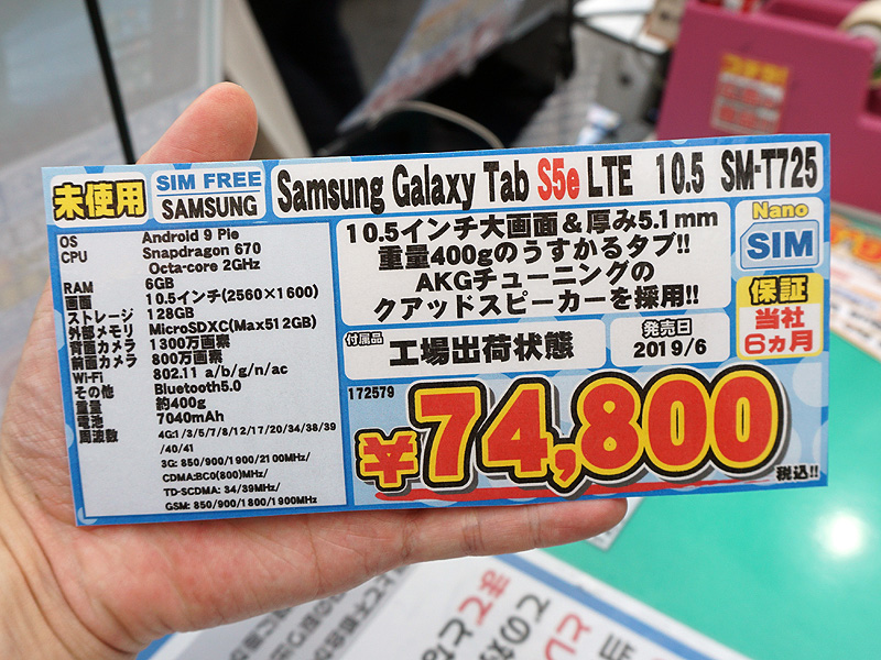 超薄型タブレット「Galaxy Tab S5e」のLTE対応版が直輸入、厚さ5.5mm