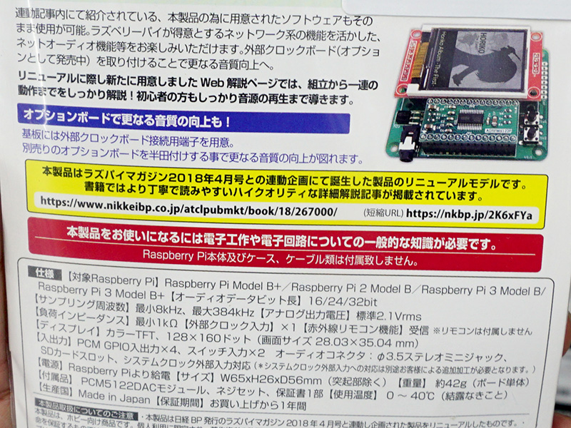 ラズベリーパイでハイレゾ音源を楽しむための拡張ボードが発売、ジャケット表示用のカラー液晶搭載