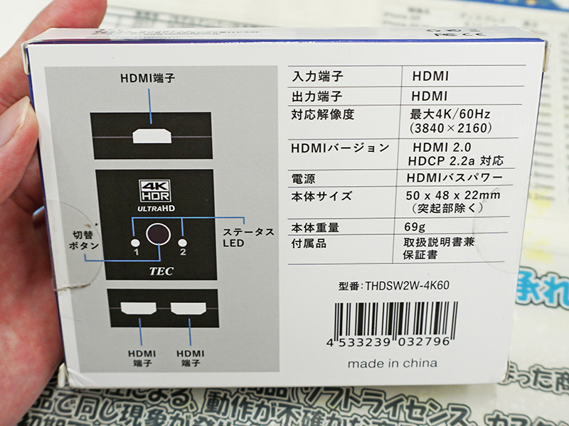 4K/60Hz HDR対応の双方向HDMI切替器がテックから、実売2,780円