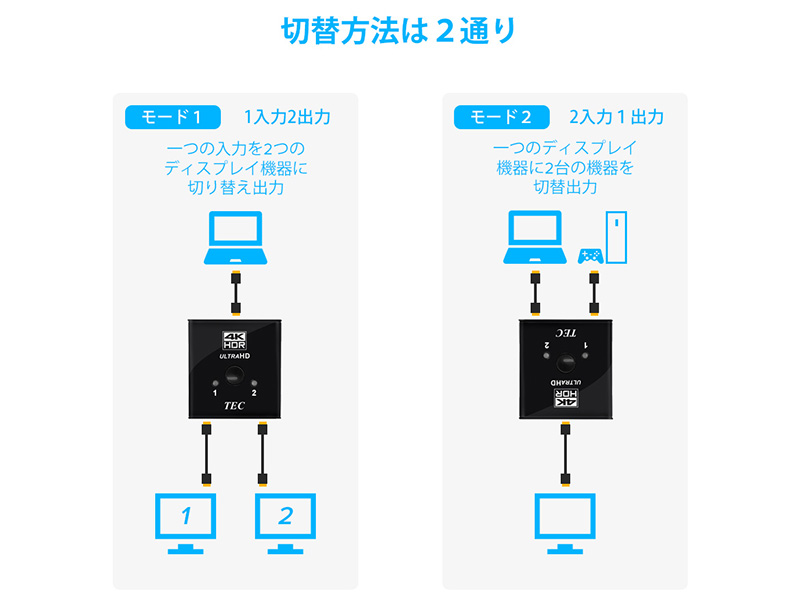 4K/60Hz HDR対応の双方向HDMI切替器がテックから、実売2,780円