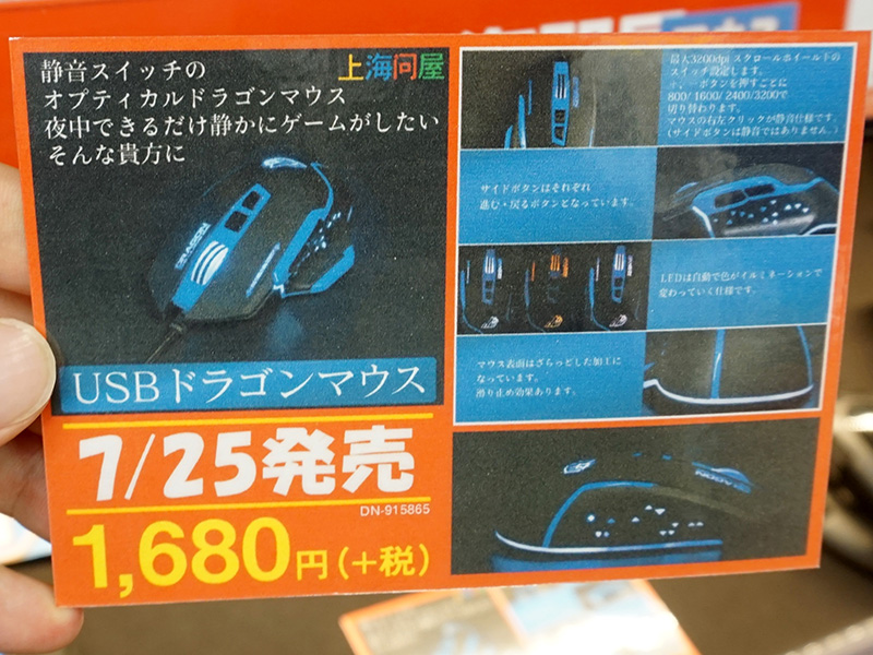 夜中でも静かにゲームを楽しめる「USBドラゴンマウス」が上海問屋から