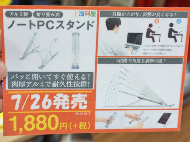 使うと姿勢が良くなる?折りたたみ式のノートPCスタンドが登場、上海問屋