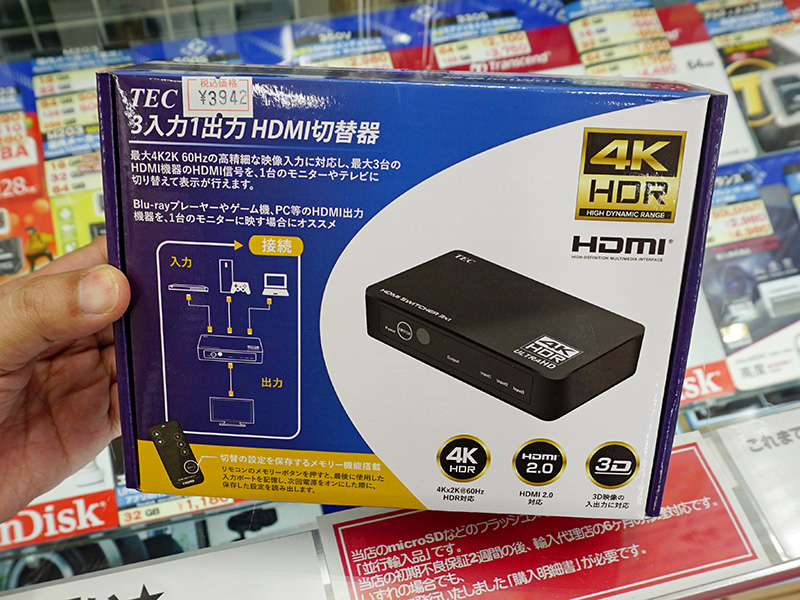 4K/60HzやHDRに対応したHDMI切替機がテックから、実売3,940円から