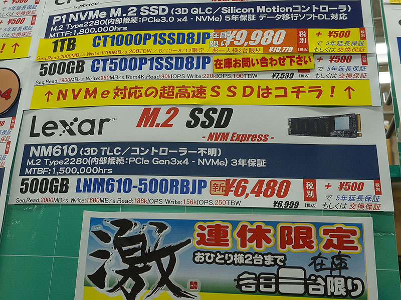 500GBで6,480円のNVMe SSD「NM610」がLexarから、リード最大2,000MB/s