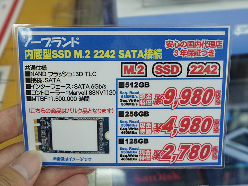 ノーブランドの安価なM.2 SSDが入荷、512GBで実売9,980円