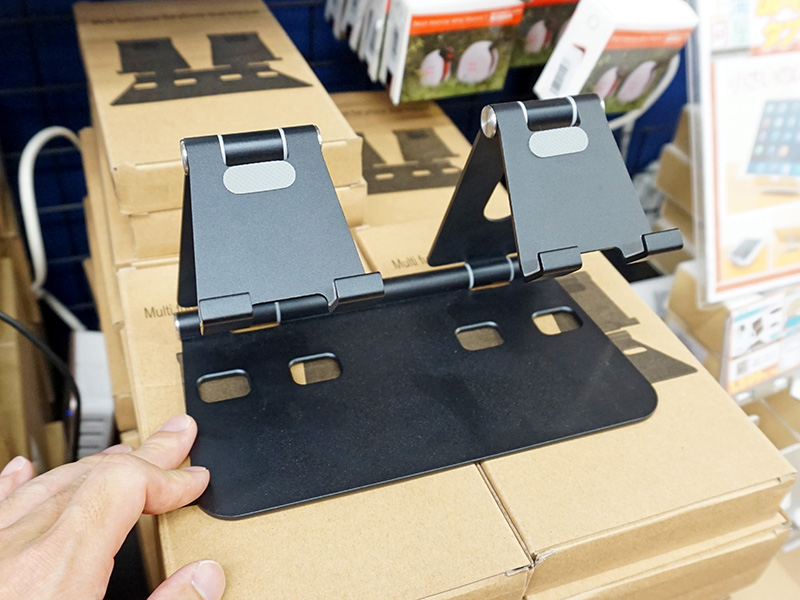 2台のスマホを並べて置けるアルミ製スタンドが上海問屋から