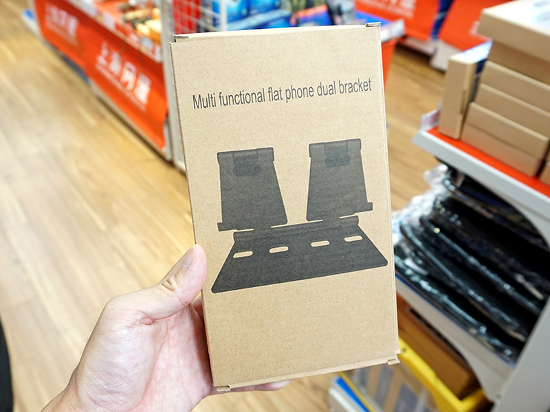 2台のスマホを並べて置けるアルミ製スタンドが上海問屋から