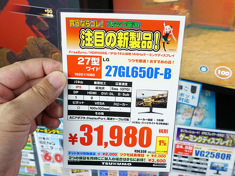 144Hz駆動の27型IPS液晶「27GL650F-B」がLGから、HDR10対応でゲーム向け機能も搭載