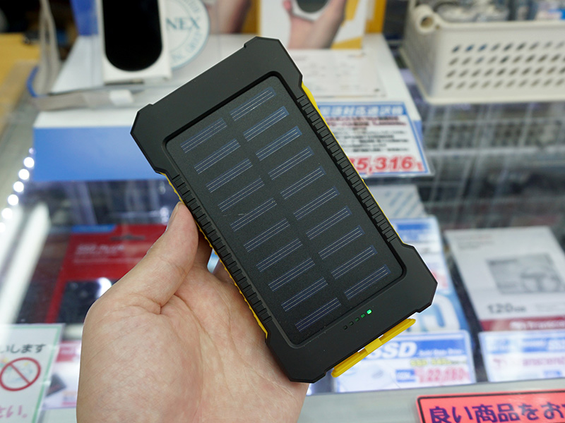 太陽充電対応のモバイルバッテリーに安価品、8,000mAhで実売1,480円