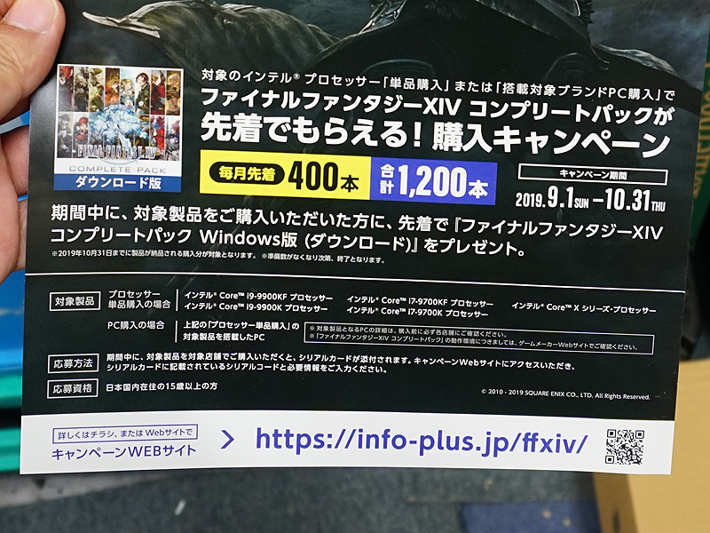 Core i9/i7購入でファイナルファンタジー XIVやWebMoneyがもらえるキャンペーンがスタート