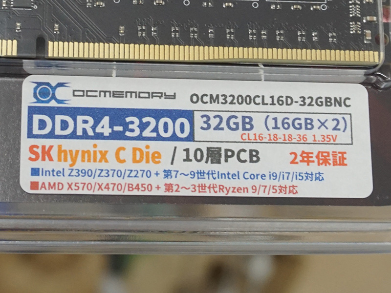 • OCMEMORYのDDR4-3200メモリ8GB×4枚組が入荷、国内テストもクリア
