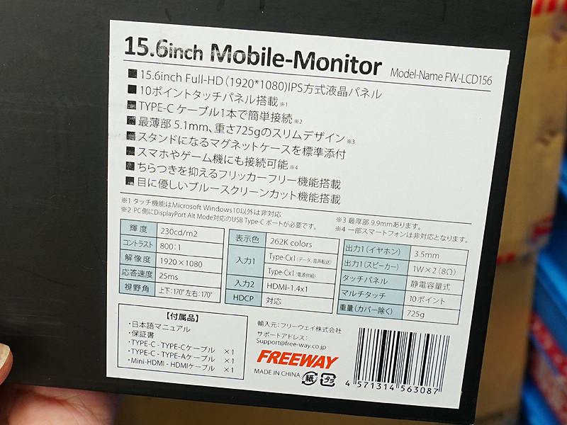 タッチ操作OKな15.6型モバイル液晶「FW-LCD156」がフリーウェイから、専用カバー付属