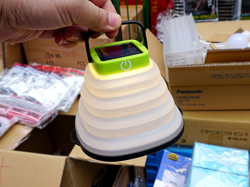 USB + ソーラー充電対応の折りたたみ式LEDライトが1,500円