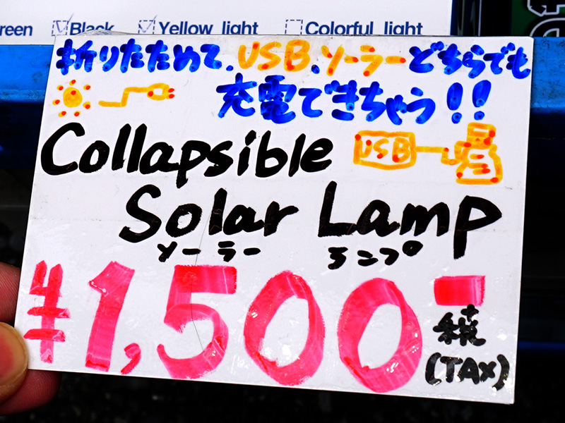 USB + ソーラー充電対応の折りたたみ式LEDライトが1,500円