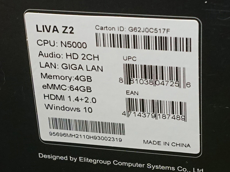 • 完全無音動作の小型PC「LIVA Z2」にストレージ64GBモデル、OSはWindows 10 Home Sモードを採用