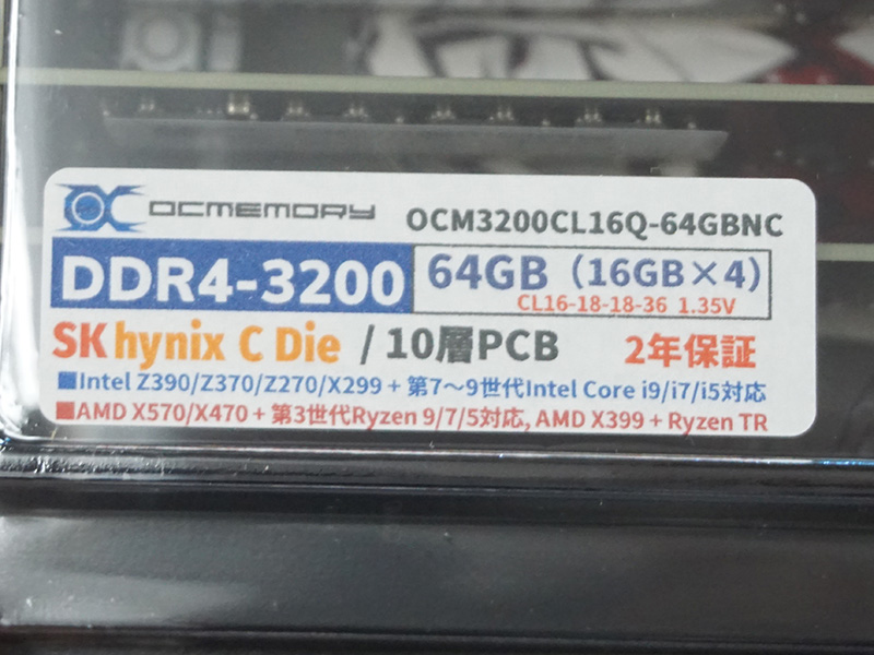 OCMEMORYのDDR4-3200メモリ8GB×4枚組が入荷、国内テストもクリア