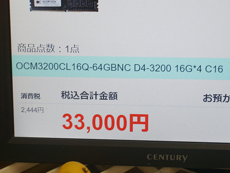 OCMEMORYのDDR4-3200メモリ8GB×4枚組が入荷、国内テストもクリア