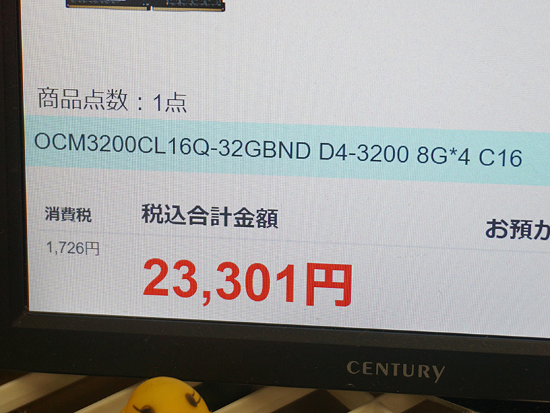OCMEMORYのDDR4-3200メモリ8GB×4枚組が入荷、国内テストもクリア