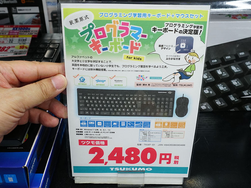 子供向けの「秋葉原式プログラマーキーボード」が発売、キートップに「アスタリスク」などのふりがな有り