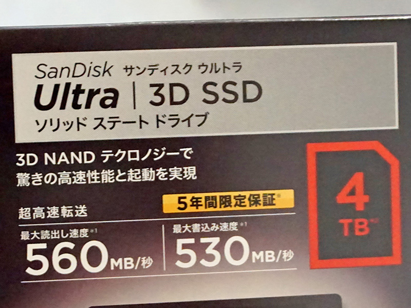 SanDisk「Ultra 3D SSD」の4TBが入荷
