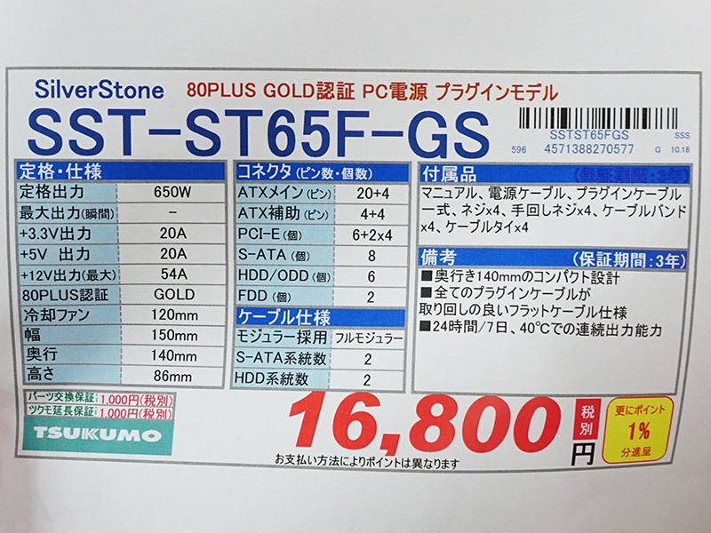 奥行き140mmのSilverStone製ATX電源「ST65F-GS」、80PLUS GOLD認証取得