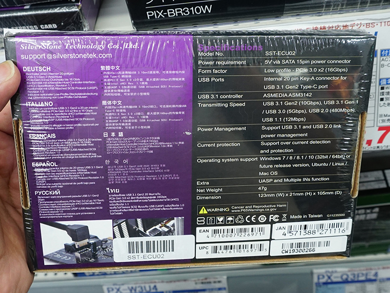 USB 3.1 Gen2の内部ポート増設用の拡張カードがSilverStoneから