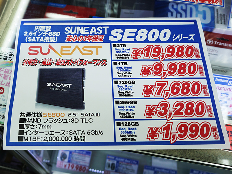 SUNEAST製SSD「SE800」の640GBが入荷、実売9,980円