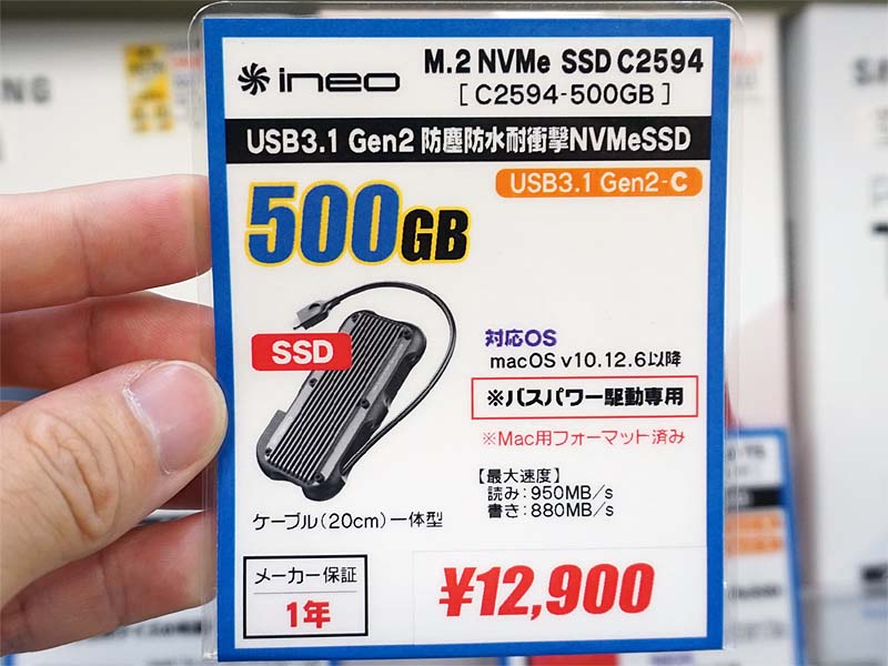 耐衝撃/防塵/防水仕様のMac向けポータブルSSDが入荷、最大リード速度は950MB/s