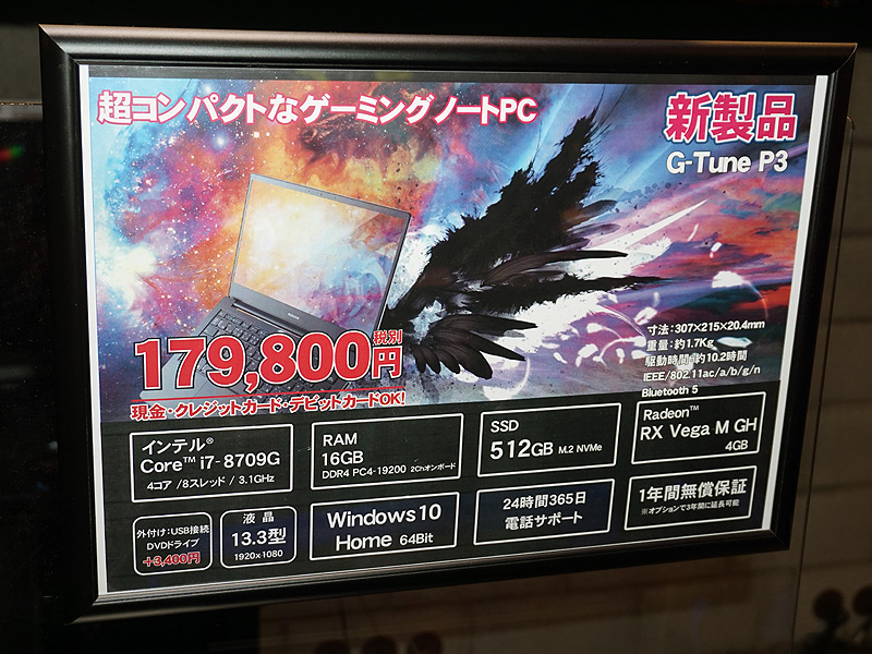 Radeon GPU統合の“Core i7-8709G”を搭載、13.3型ノート「G-Tune P3」が受注開始