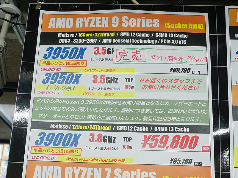品薄が続くRyzen 9 3950Xのバルク品が入荷、マザーとのセット販売限定(2/5)