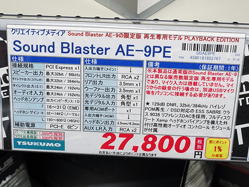 クリエイティブのハイエンドサウンドカード「Sound Blaster AE-9 PE」が入荷、店頭限定モデル