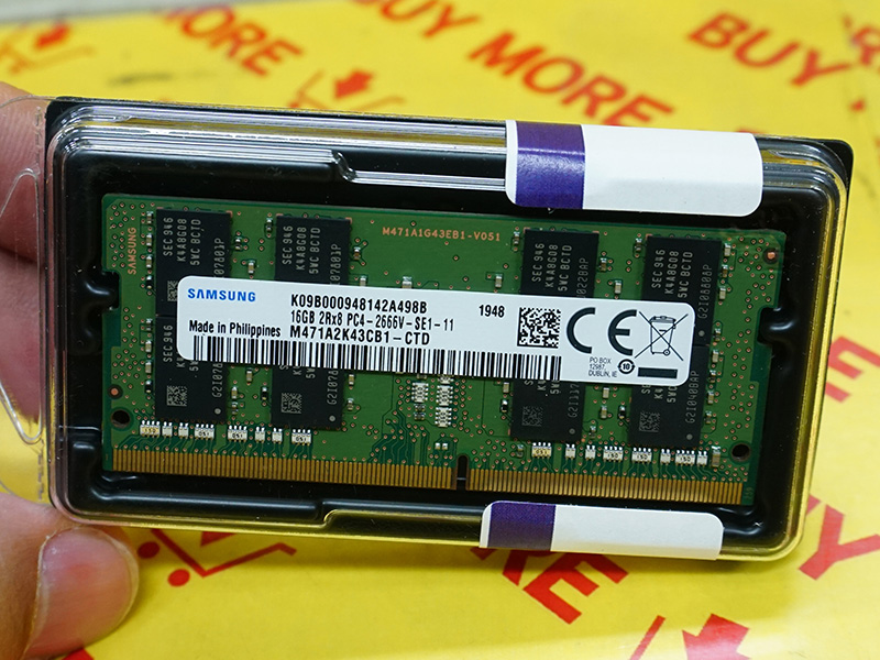 1枚16GBのDDR4-2666 SO-DIMM、Samsung純正モジュール採用