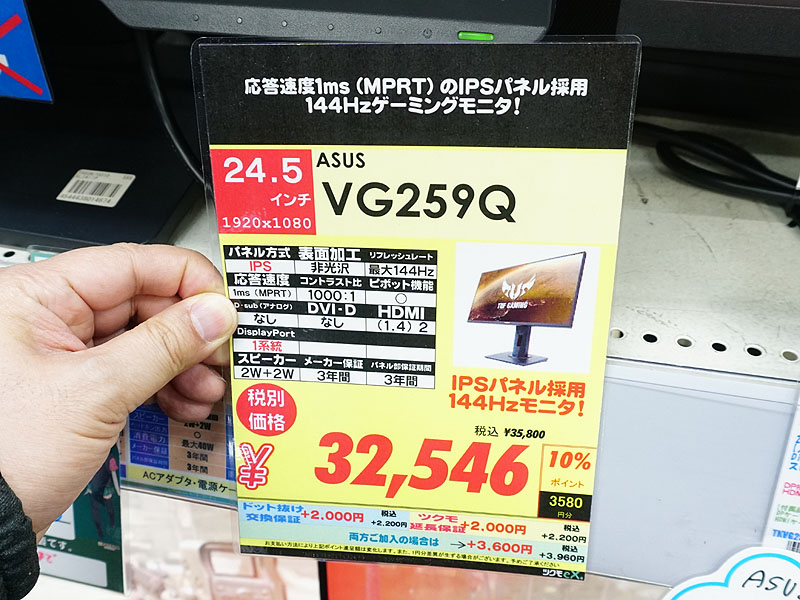 IPSパネル/144Hz駆動の24.5型液晶「TUF Gaming VG259Q」が発売、ASUS製