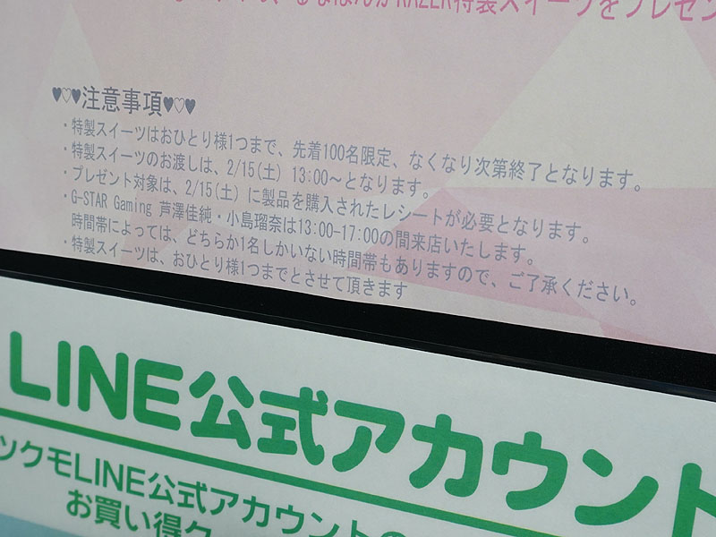 “つくもたんチョコ”の配布や女性ゲーマーのRazer特製スイーツお渡し会など、PC系ショップのバレンタインイベント