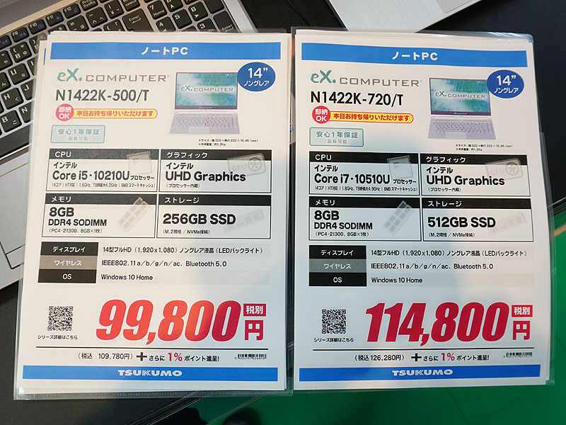 第10世代Coreシリーズ搭載、TSUKUMOの14型モバイルノートが99,800円から
