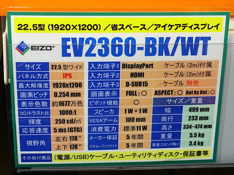 デイジーチェーン対応のEIZO製24.1型液晶「FlexScan EV2457」が店頭入荷
