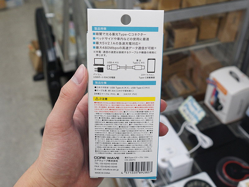 暗闇で光る蓄光タイプのUSB Type-Cケーブルが税込330円、急速充電にも対応