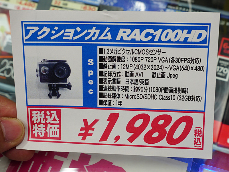 付属品充実で1,500円のフルHDアクションカメラが入荷、振動検知で自動撮影