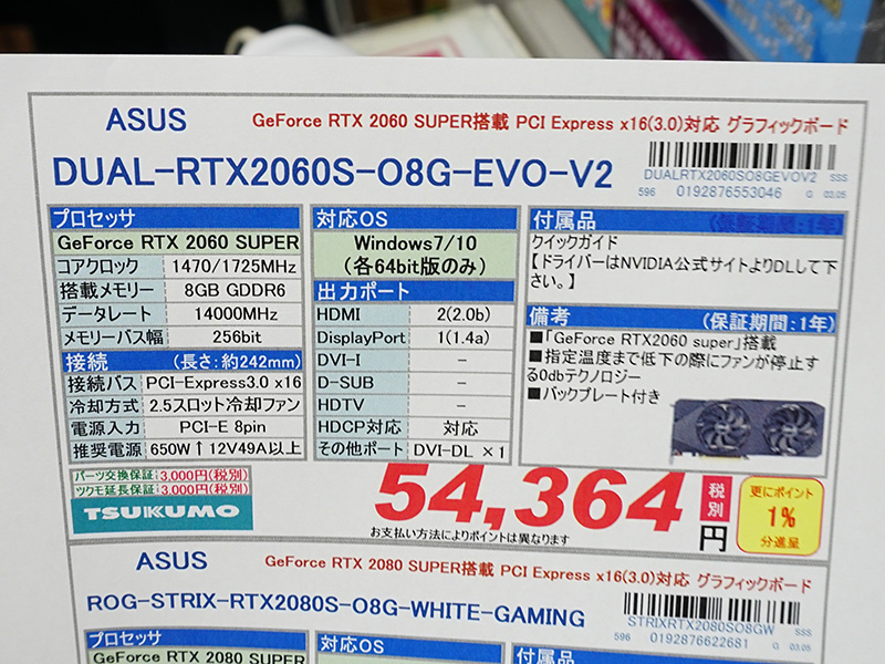 「GeForce RTX 2060 SUPER」搭載モデルは計9製品、長さ210mmのショート基板もあり