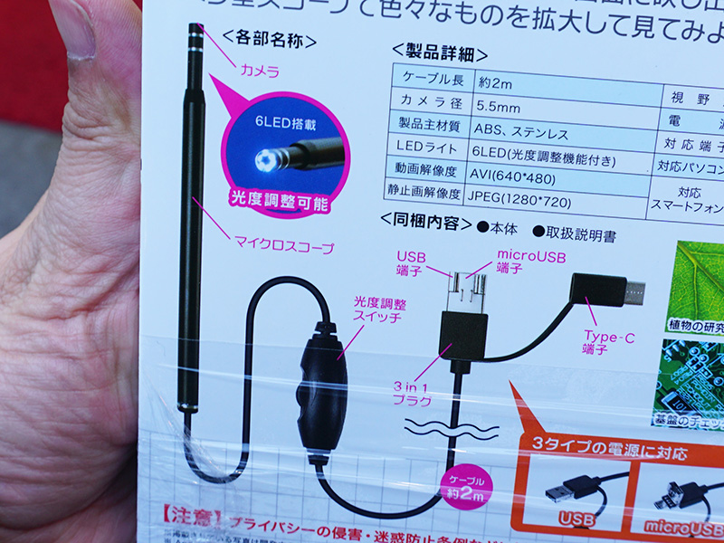耳掃除もできるUSBマイクロスコープが入荷、税込1,680円