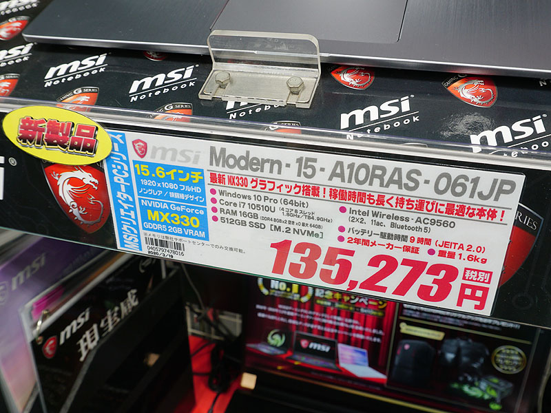 第10世代Core i7搭載のクリエイター向けノート「Modern 14」がMSIから、価格は109,800円
