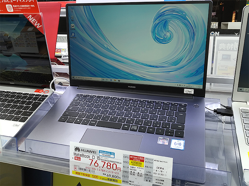 Ryzen 5 3500U搭載の15.6型ノート「HUAWEI MateBook D 15」がデビュー、価格は69,800円