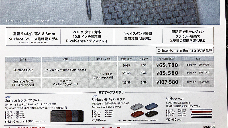 10.5型タブレットPC「Surface Go 2」がデビュー、Office付きで税込65,780円から