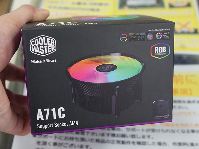 鮮やかに光るトップフロー型CPUクーラー「A71C」、Cooler Master製