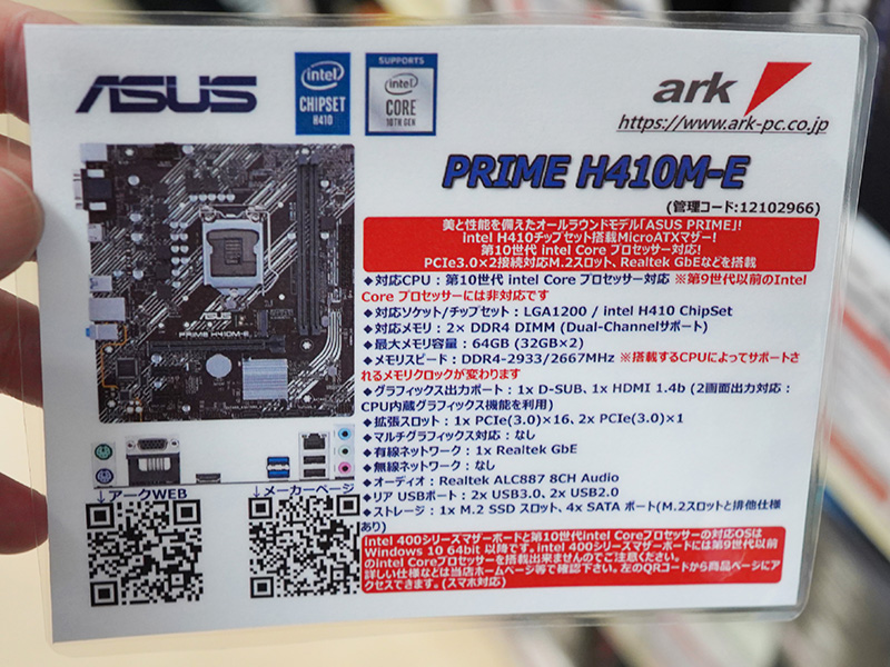 ASUSの安価なmicroATXマザーが2種類、「PRIME H410M-A」など