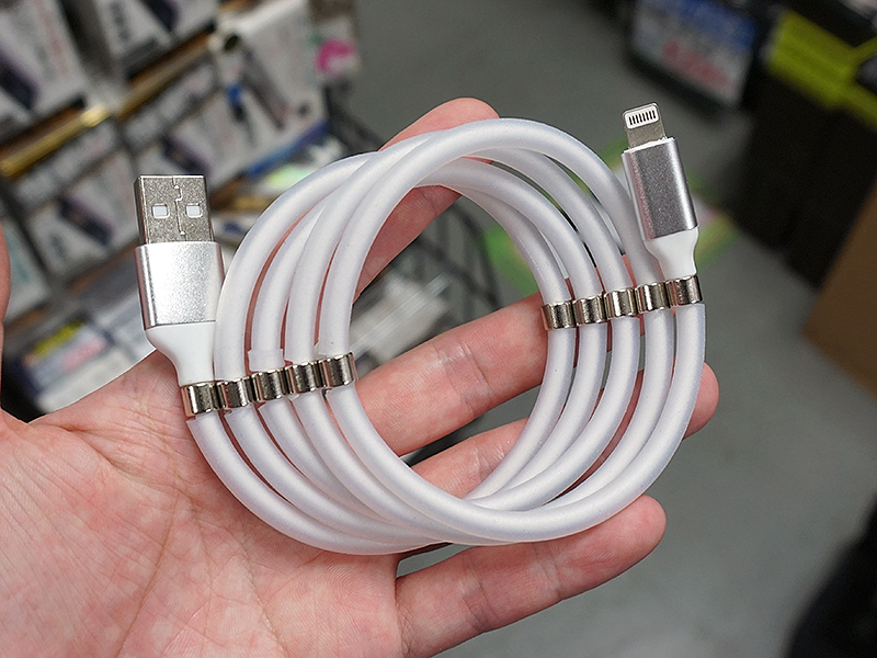 絡まらない充電ケーブル「マグネットロープケーブル」が店頭販売中、実売980円